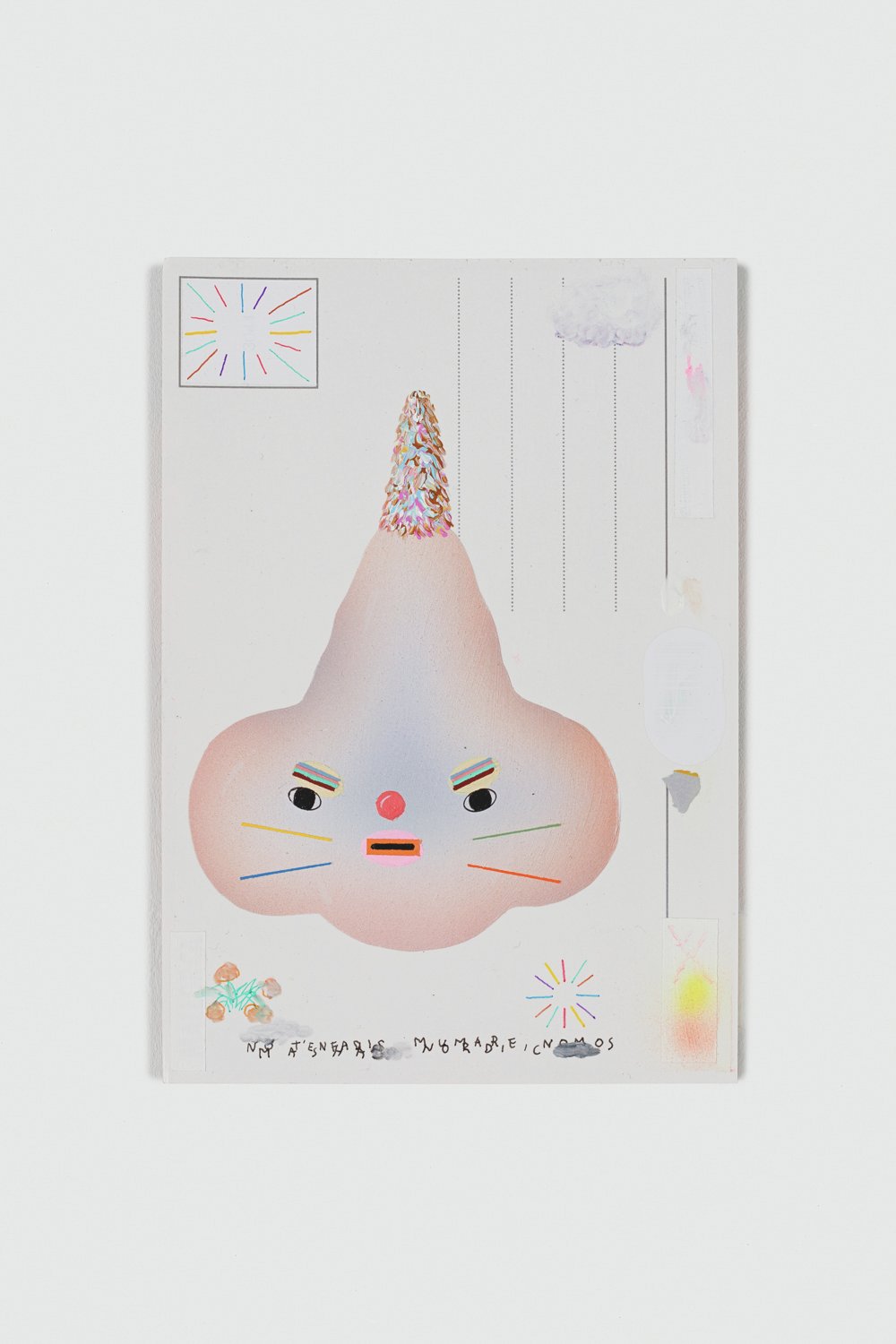 Acrylic, ink and pencil on postcard