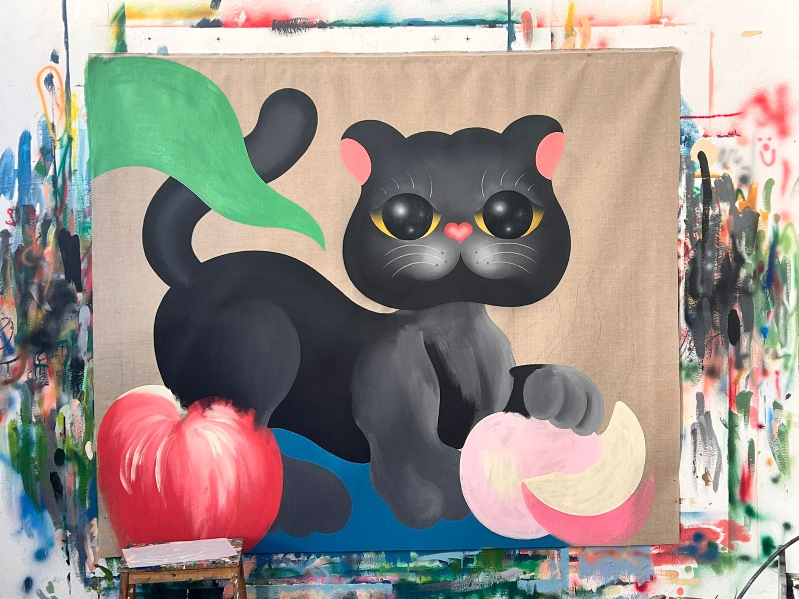 Acrylic and spray paint on canvas