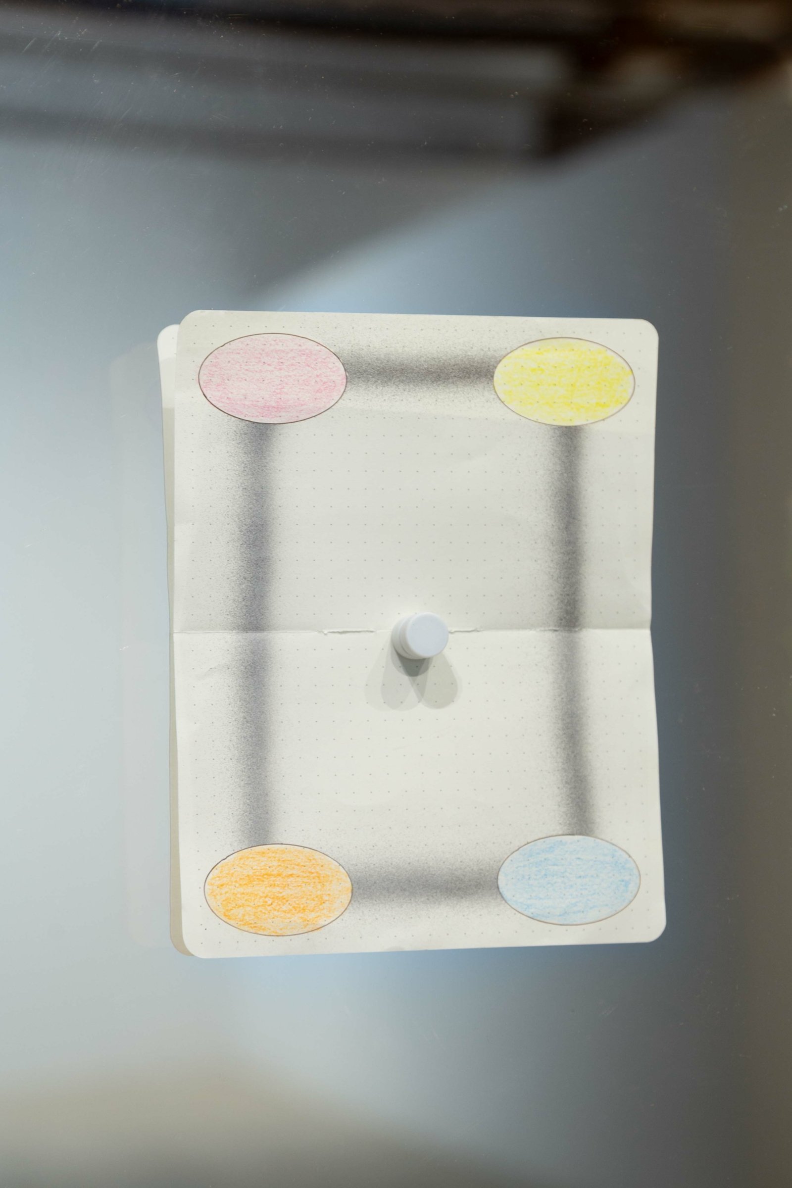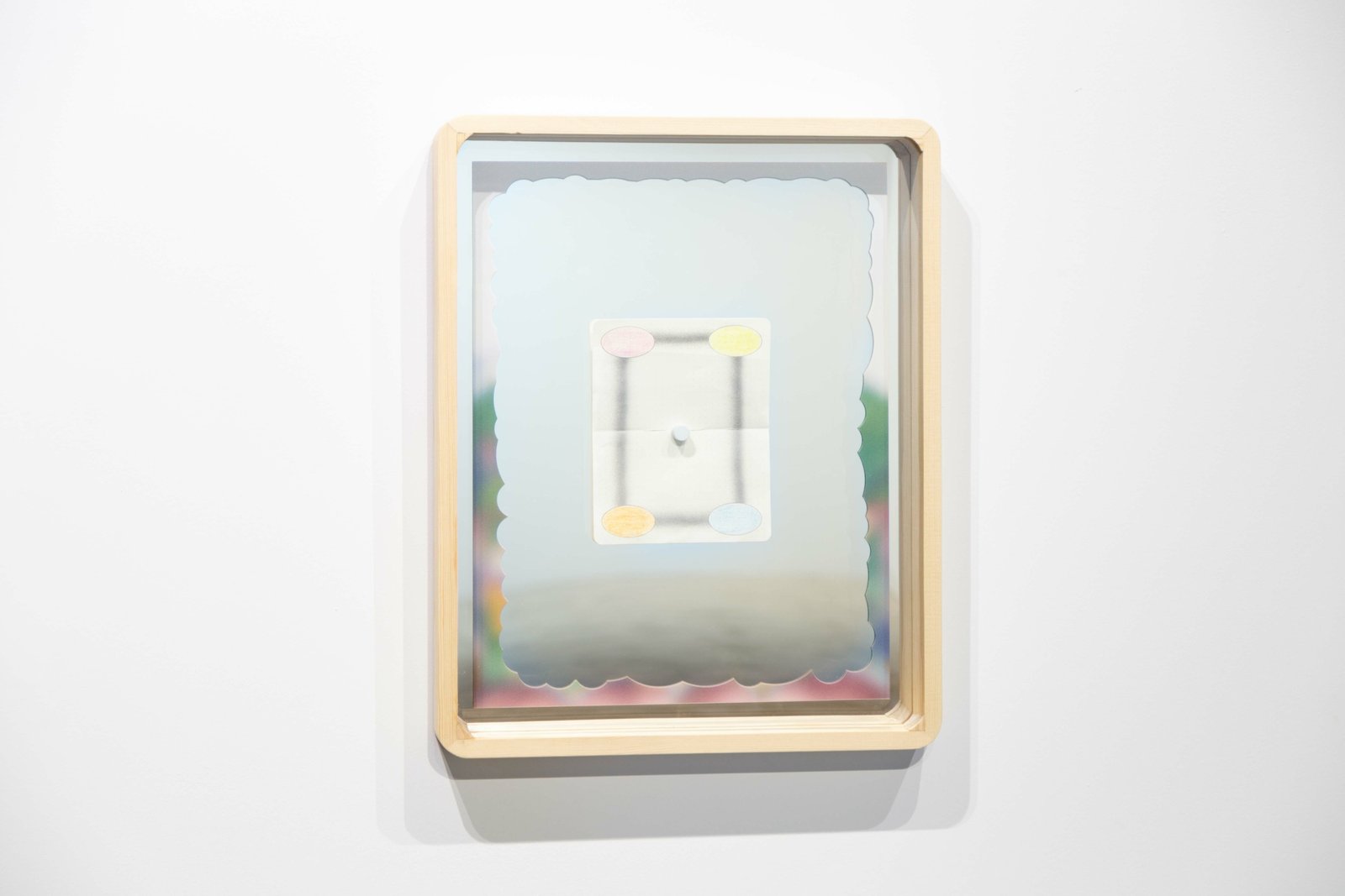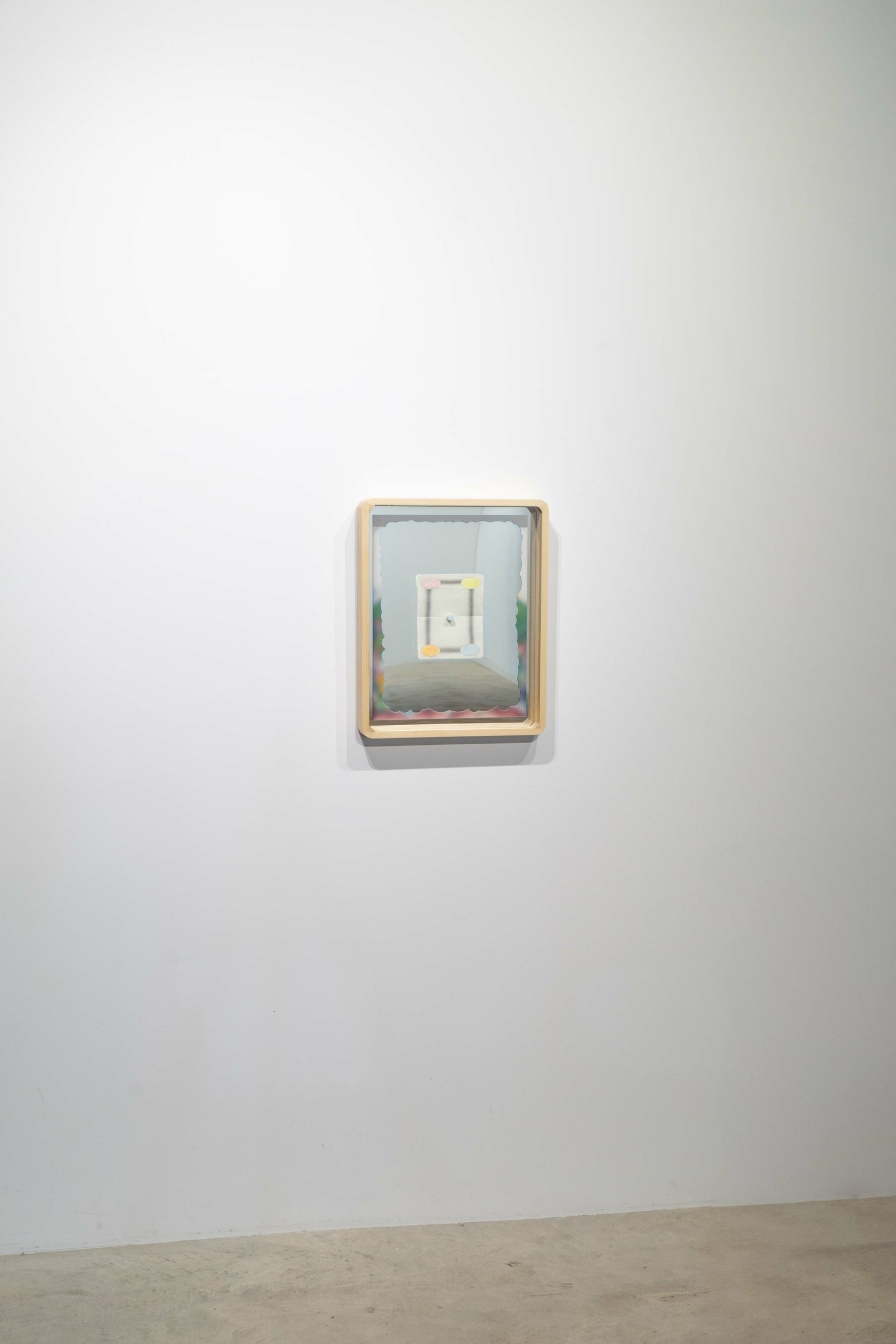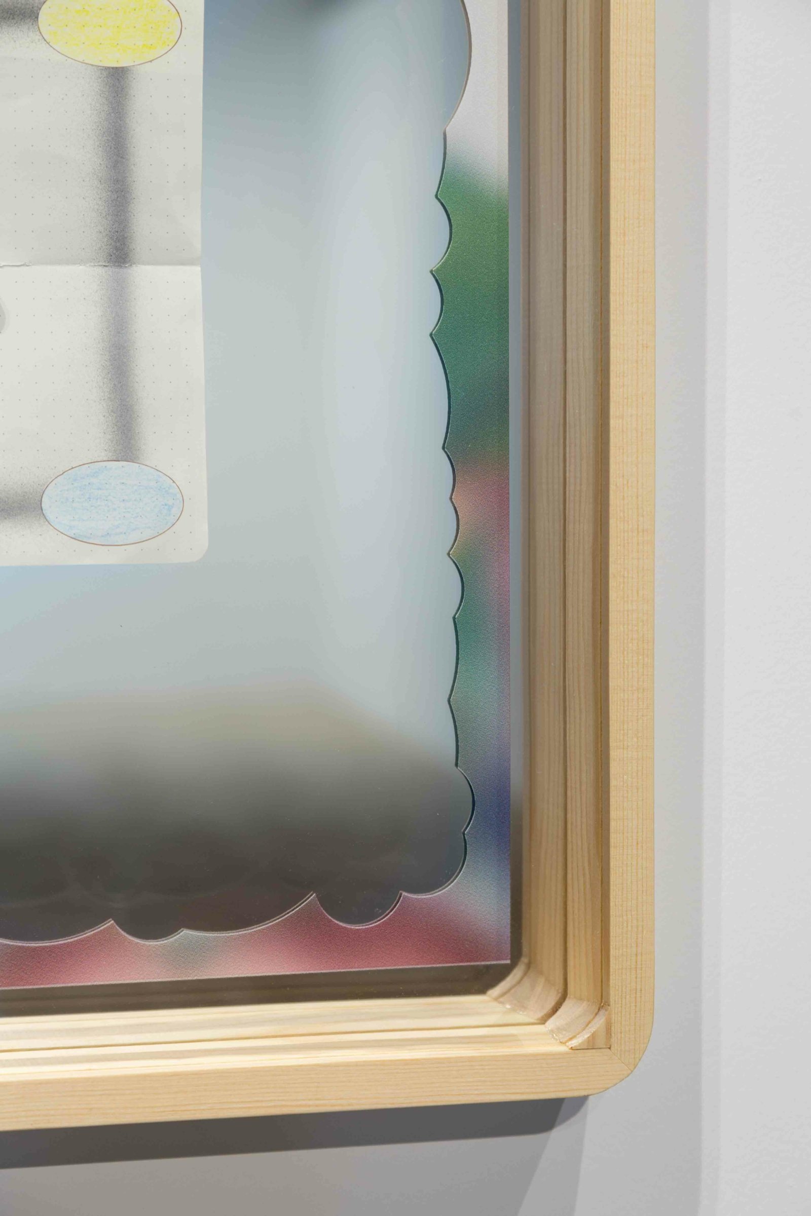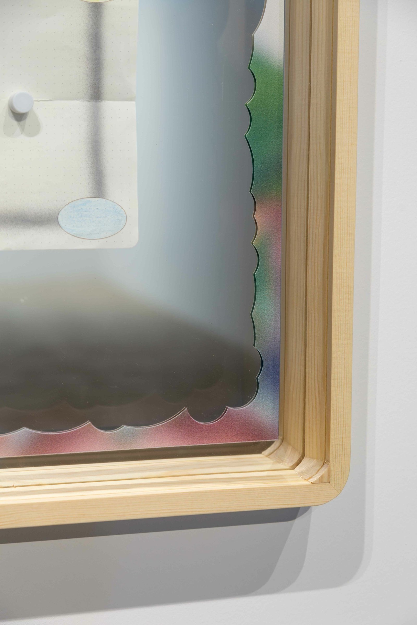 Oil, pencil, acrylic, uvi & paper on mirror