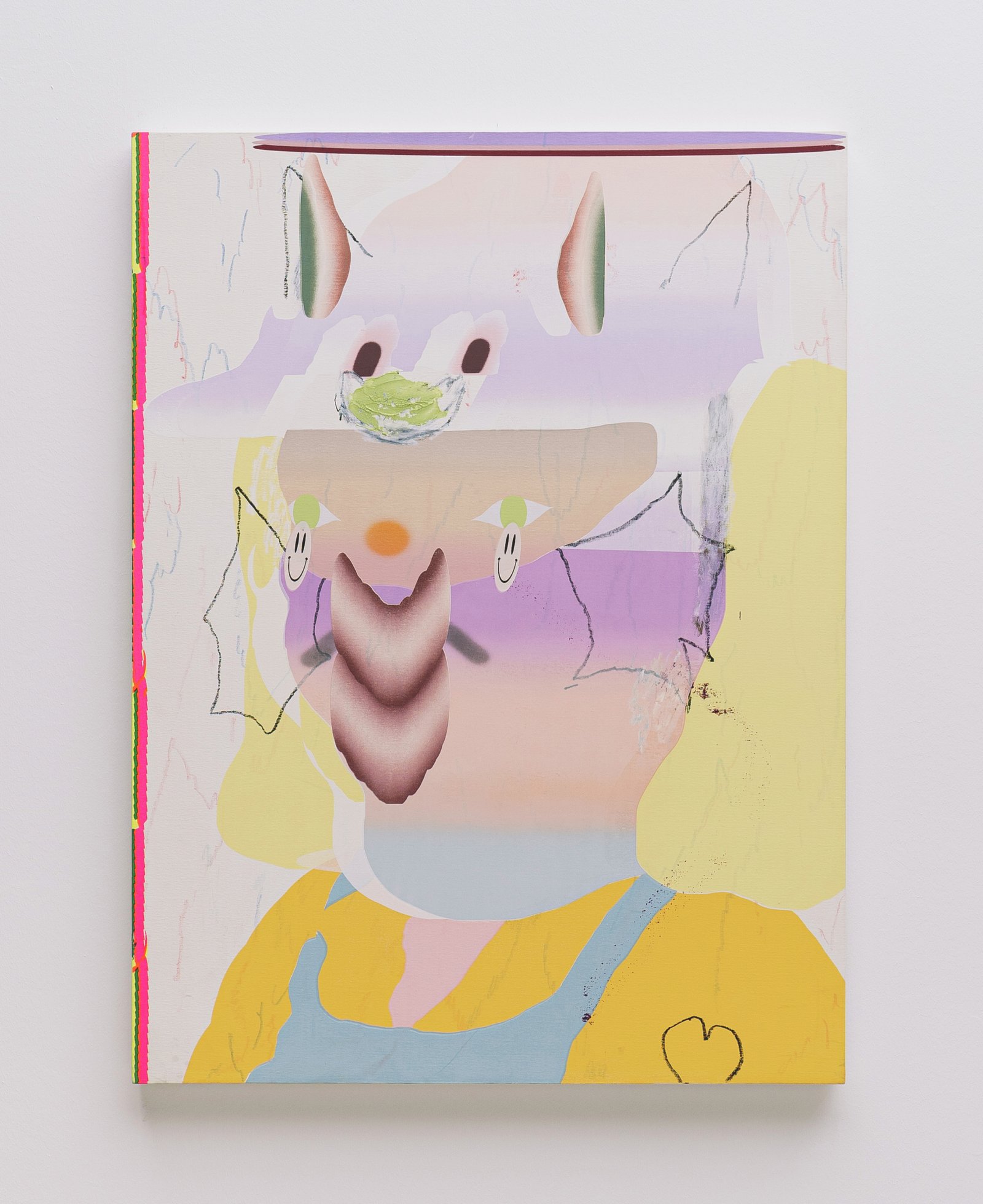 Screen printing of 38 colors, pencil, acrylic, spray, oil waxes, polyurethane enamel on canvas.