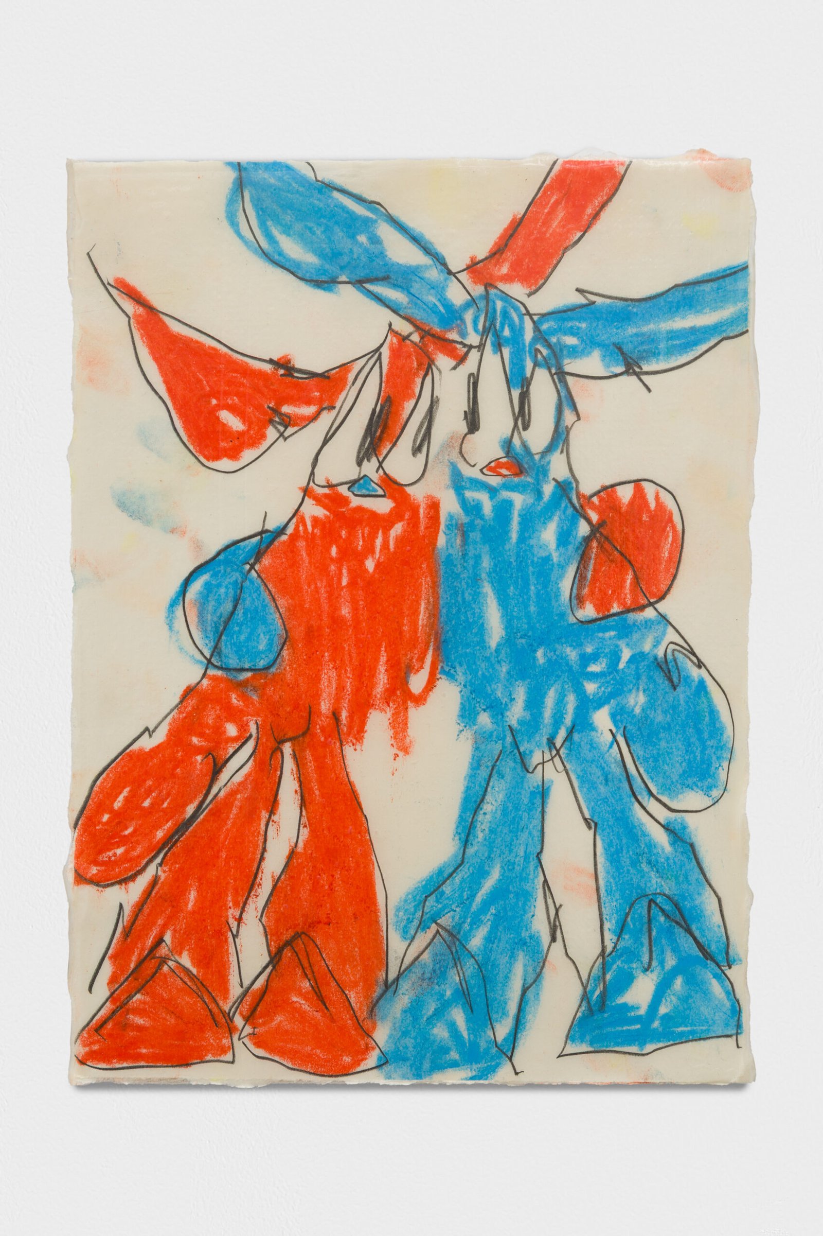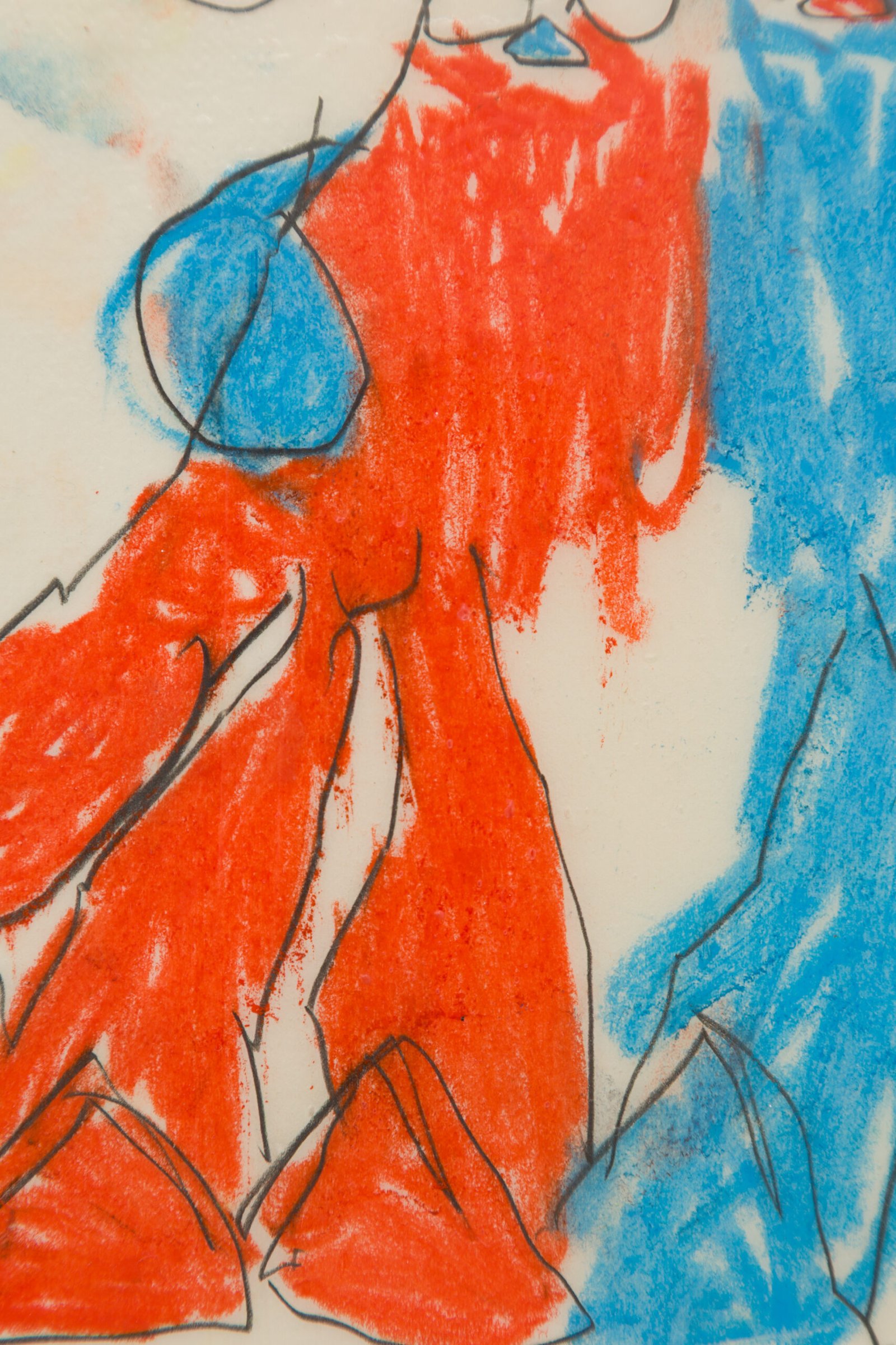 Soft pastels, pencil, paper, and acrylic resin on canvas.