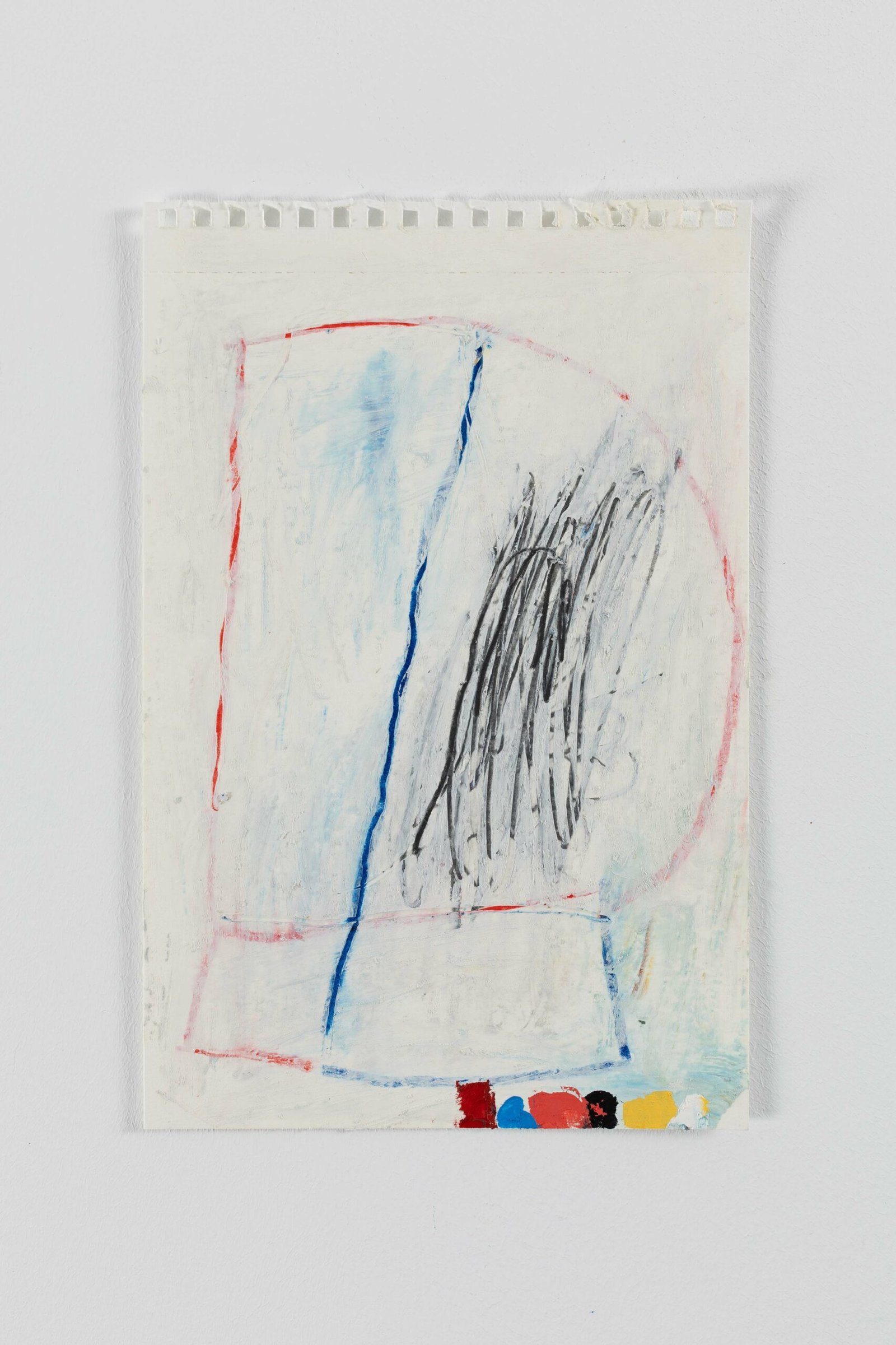 Acrylic, oil stick and charcoal on paper.