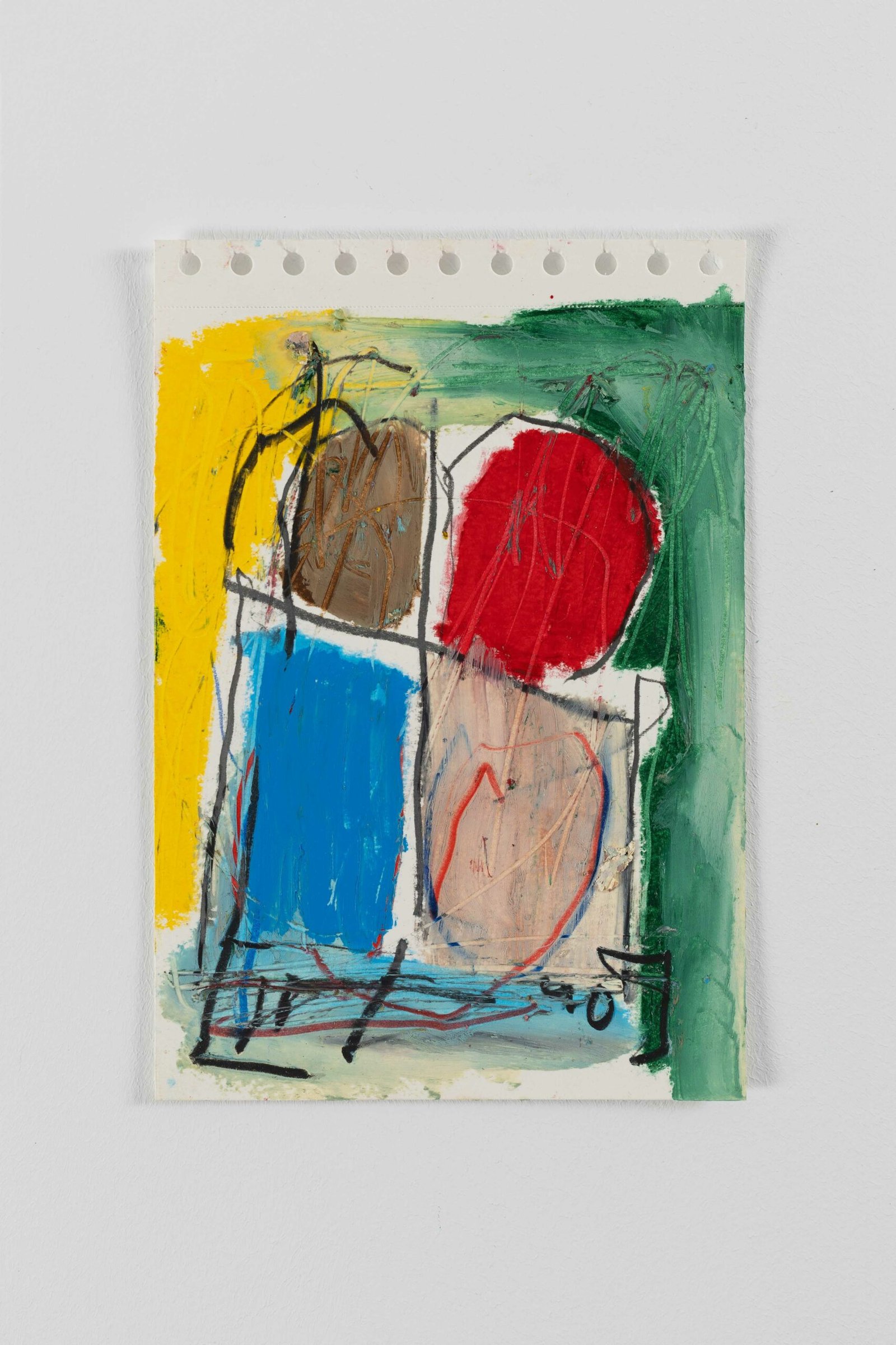 Acrylic, oil stick and charcoal on paper.