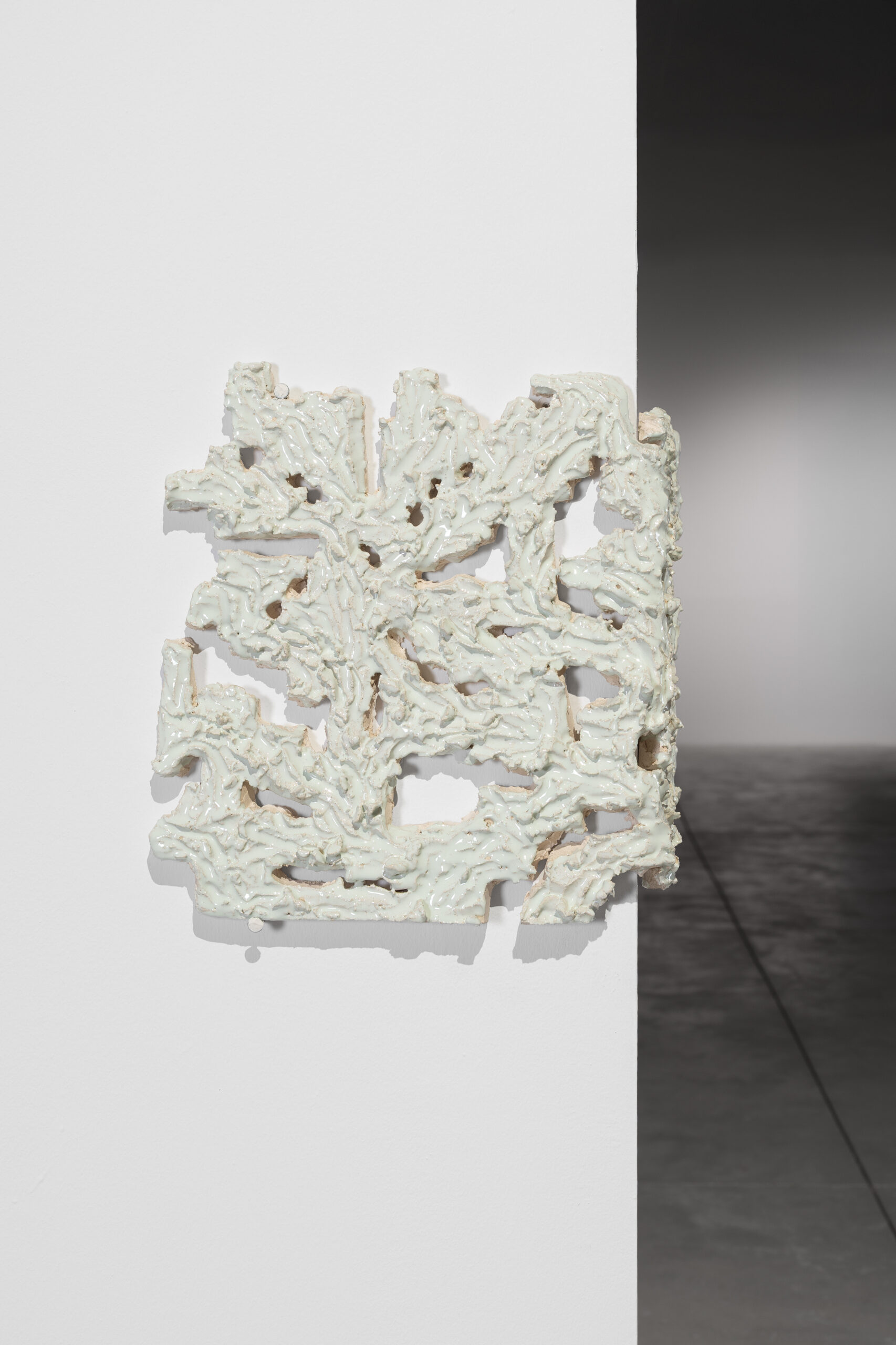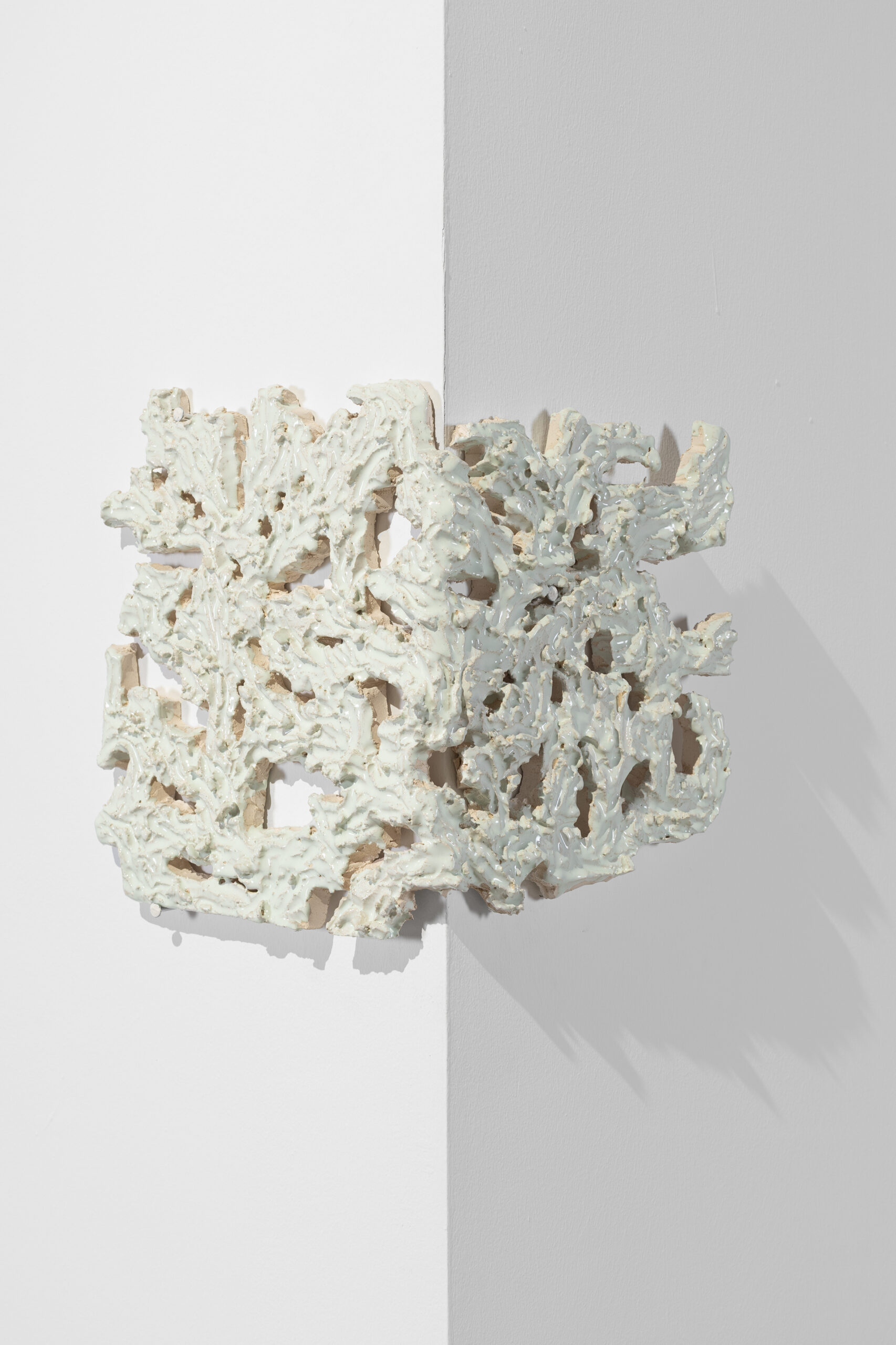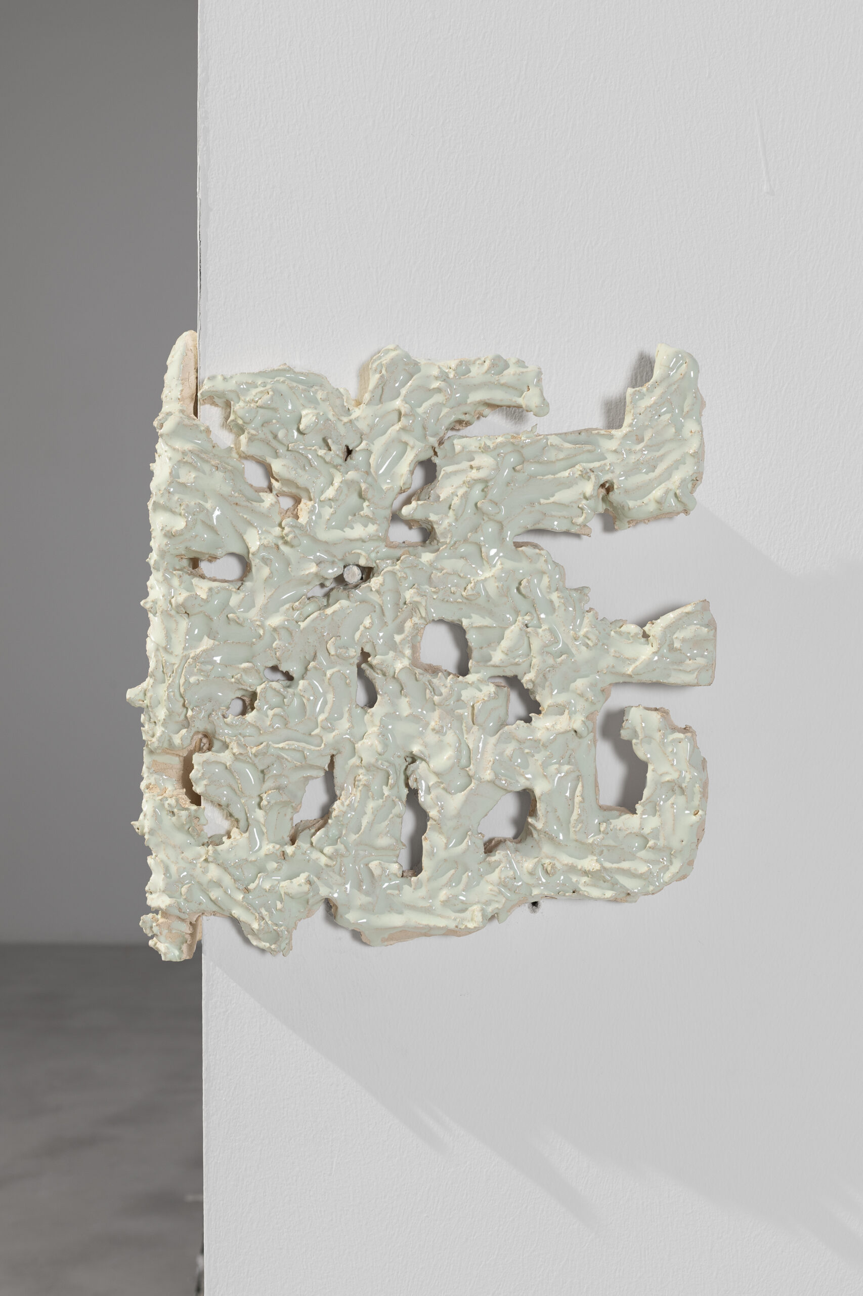 Carved and glazed ceramics.