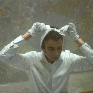 Man with white ribbon